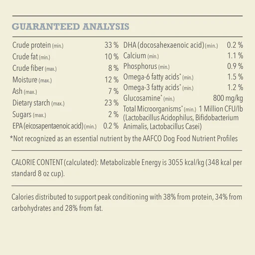 • High protein dry dog food kibble features 60 percent* high-quality animal ingredients and 40 percent** wholesome fruits and vegetables