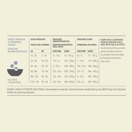 • One (1) 4.5 lb bag of ACANA Light & Fit Recipe Adult Dry Dog Food